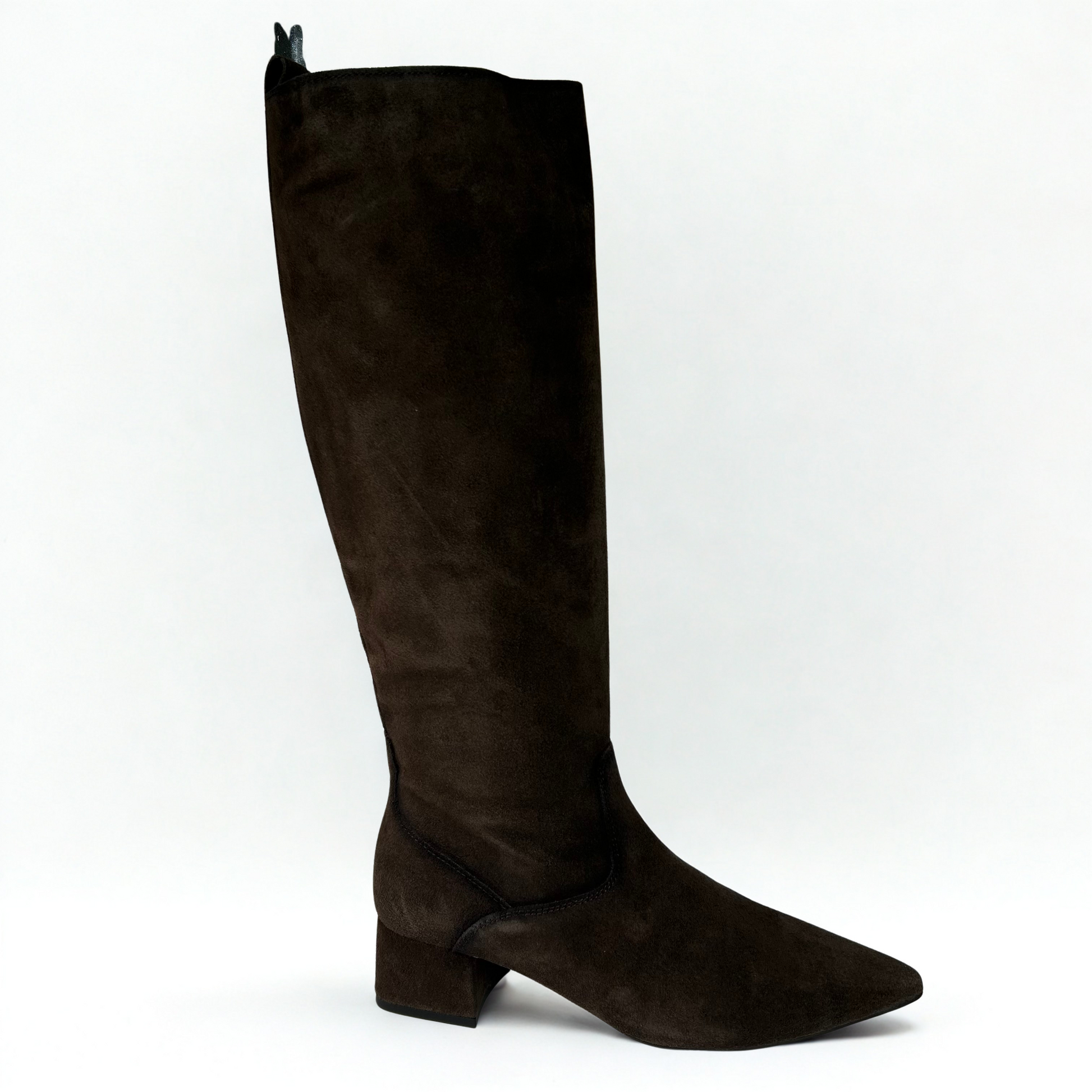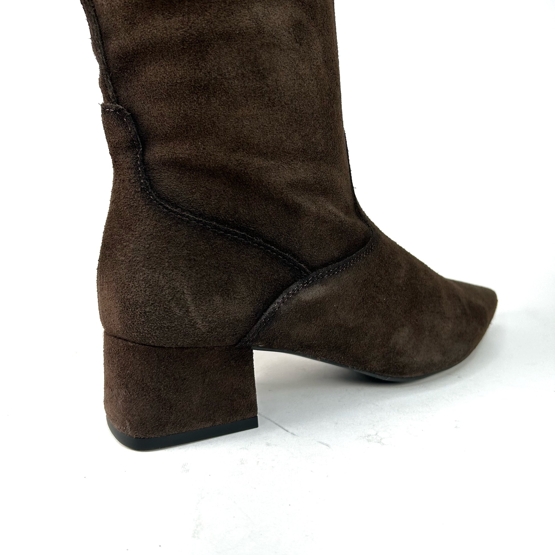 -Bota de caña alta y tacón grueso, fabricada en piel ante.