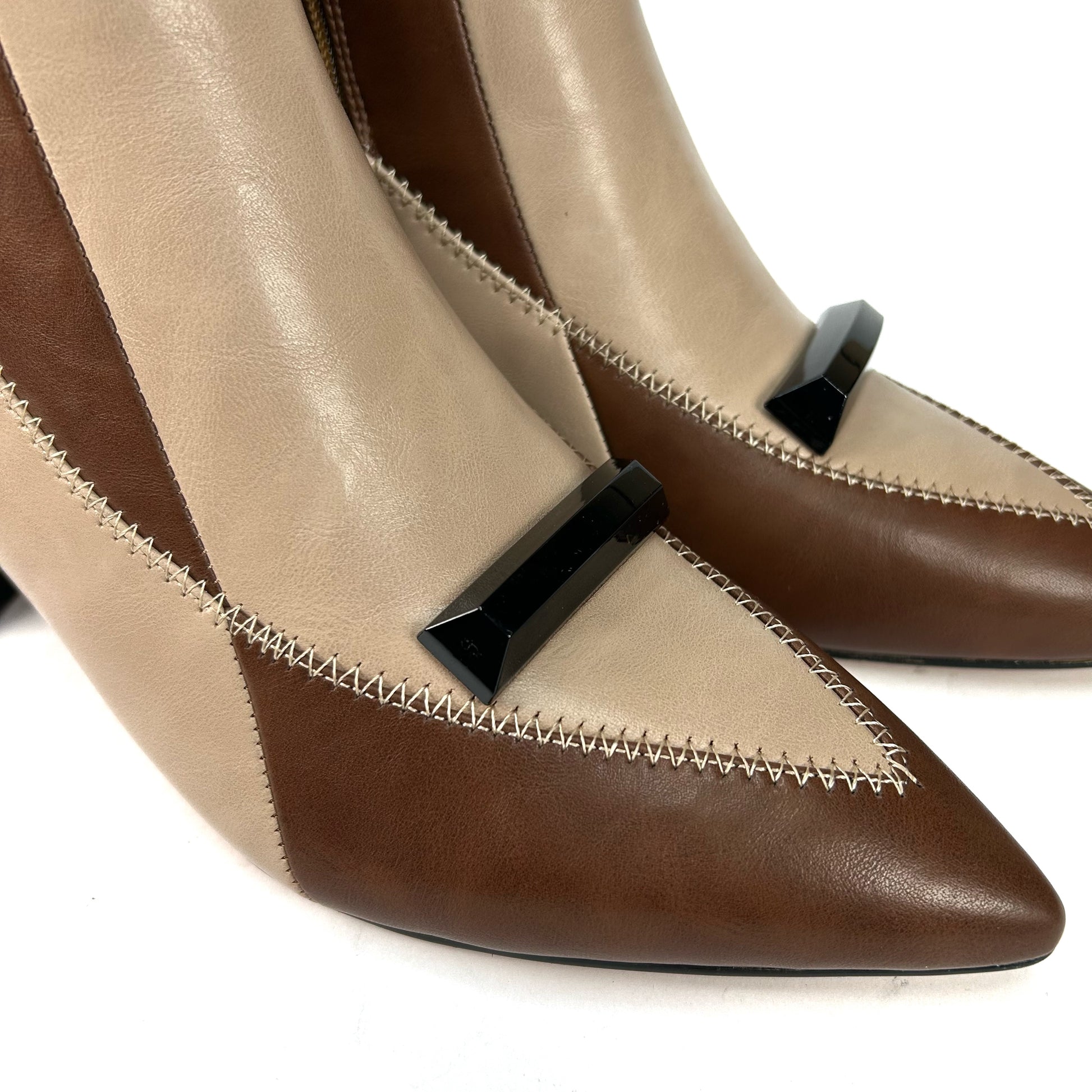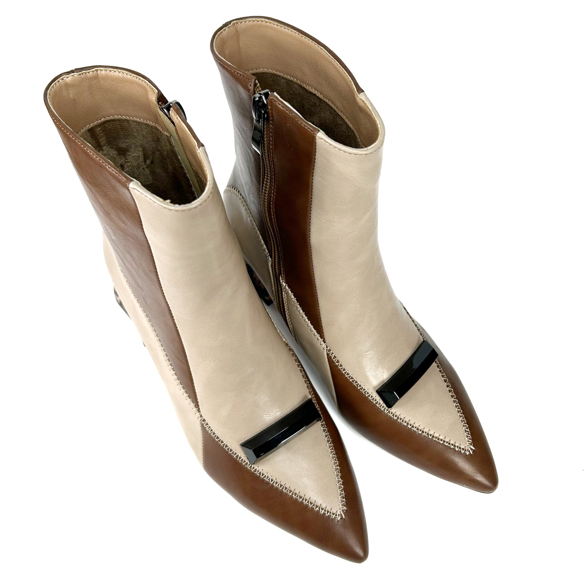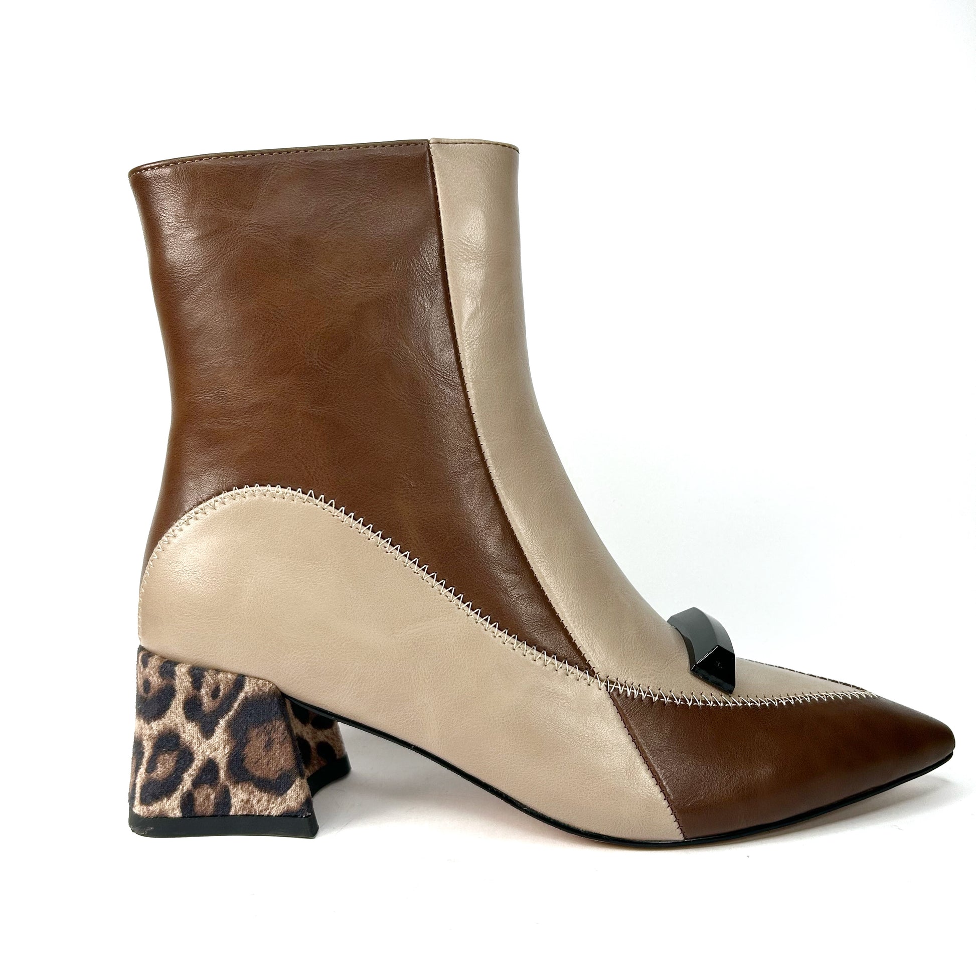 -Este botín bicolor en tonos beige y marrón es pura expresión de estilo y carácter.