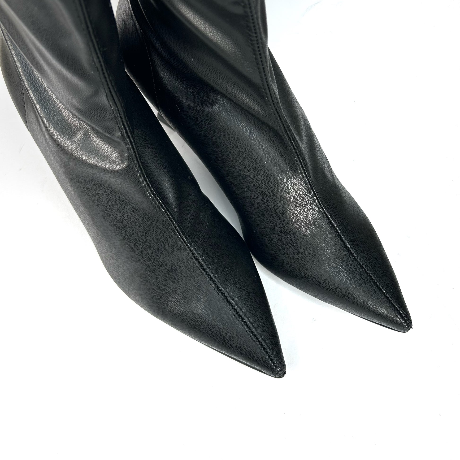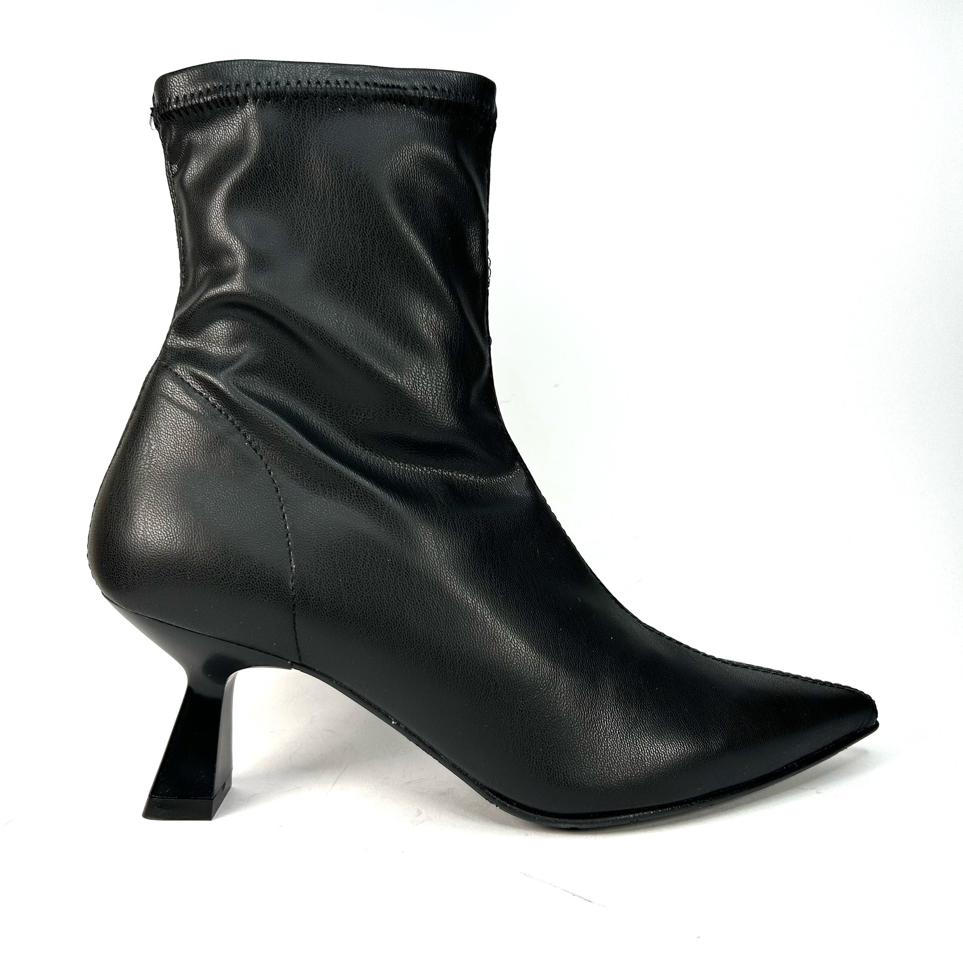 -Botín elástico efecto pie color negro, con una caña que llega al tobillo.