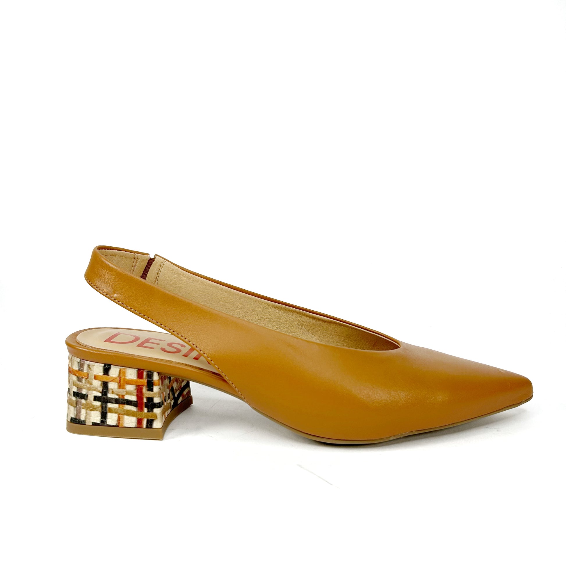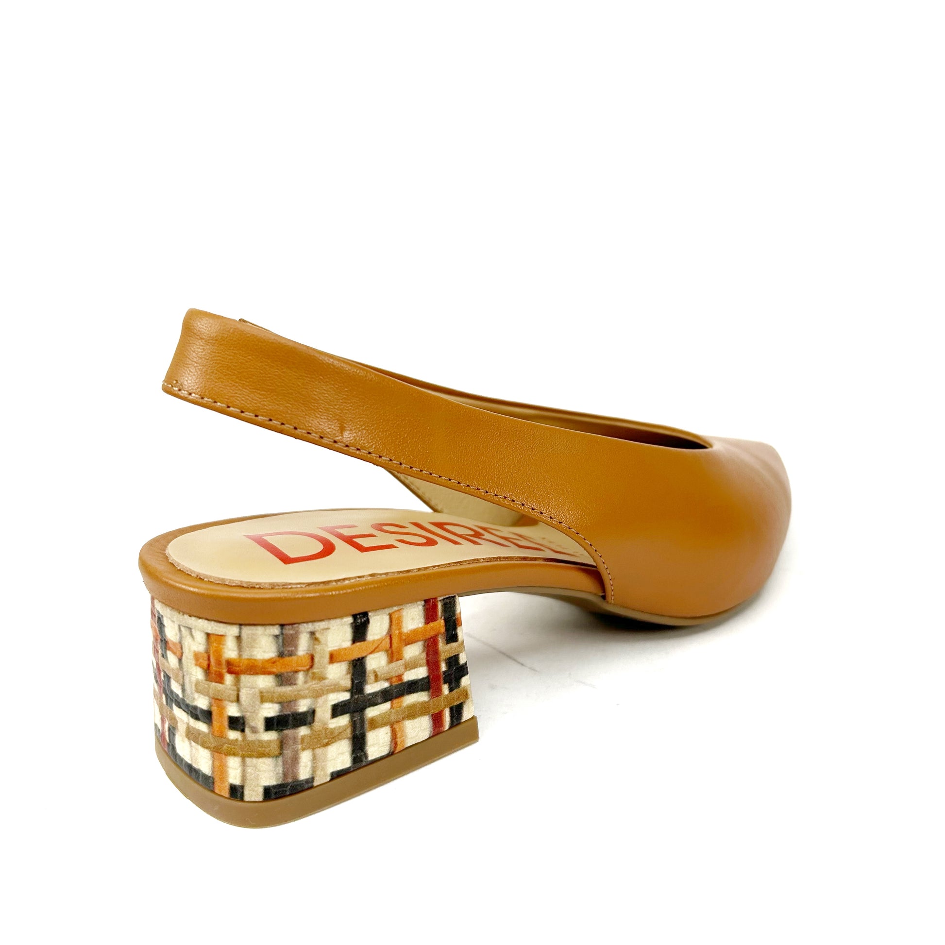 -Fabricado en piel naturales de la mejor calidad, suaves y transpirables. Color miel, altura del tacón de 5 cm y forrado en tejido imitación a rafia.