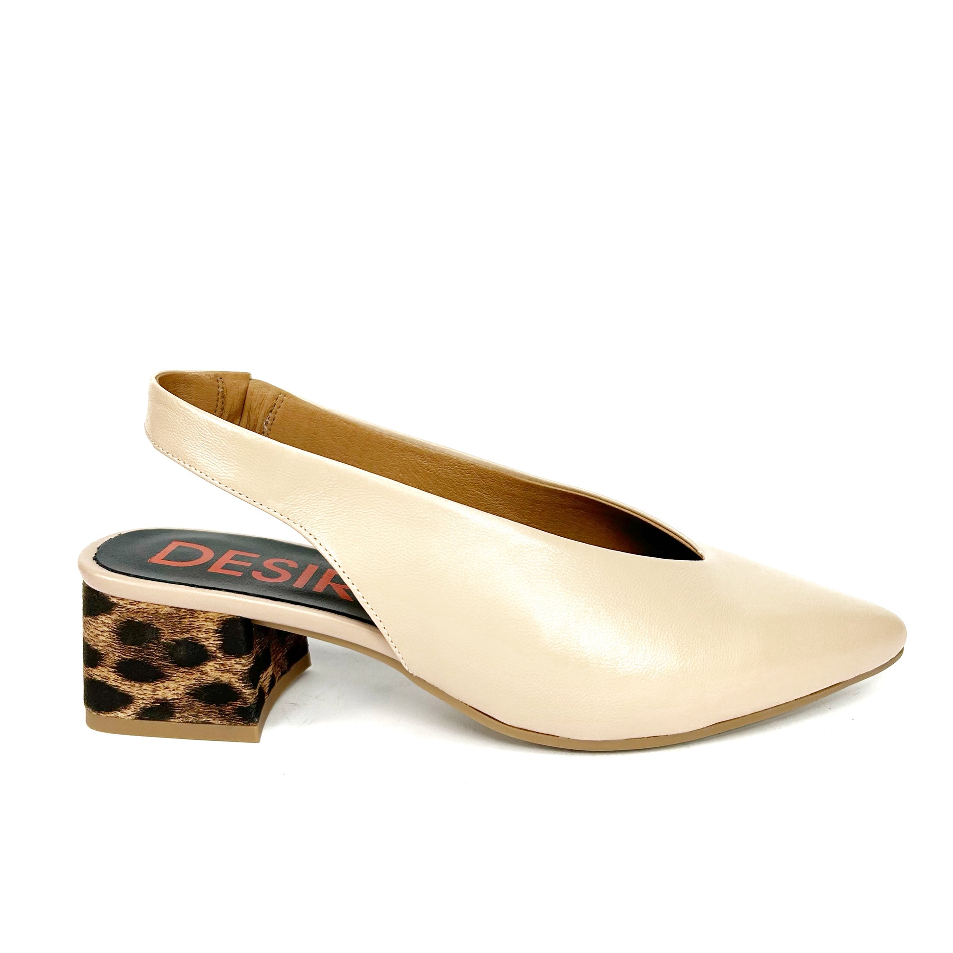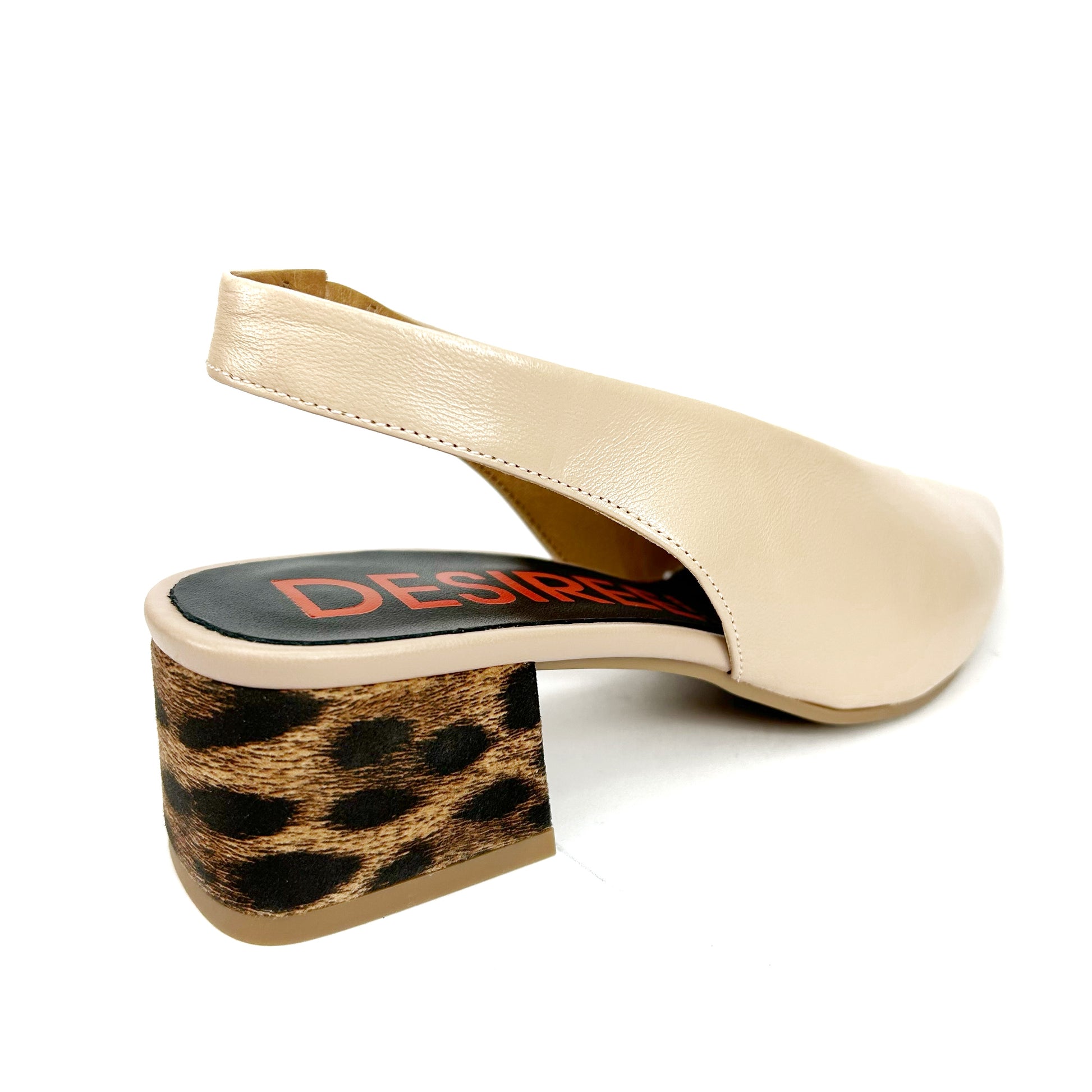-Fabricado en piel naturales de la mejor calidad, suaves y transpirables. Color beige, altura del tacón de 5 cm y forrado en piel con print leopardo.