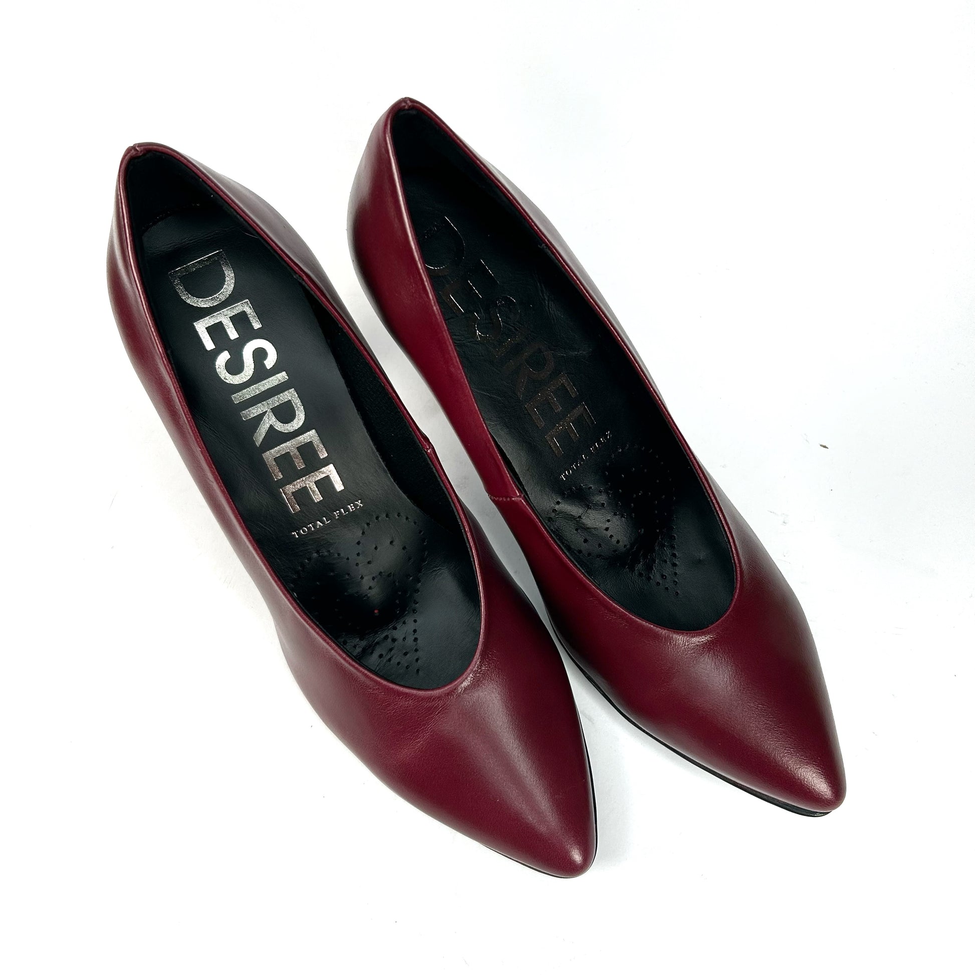 -Zapato de salón de punta fina, con pequeña plataforma de goma en la parte delantera.