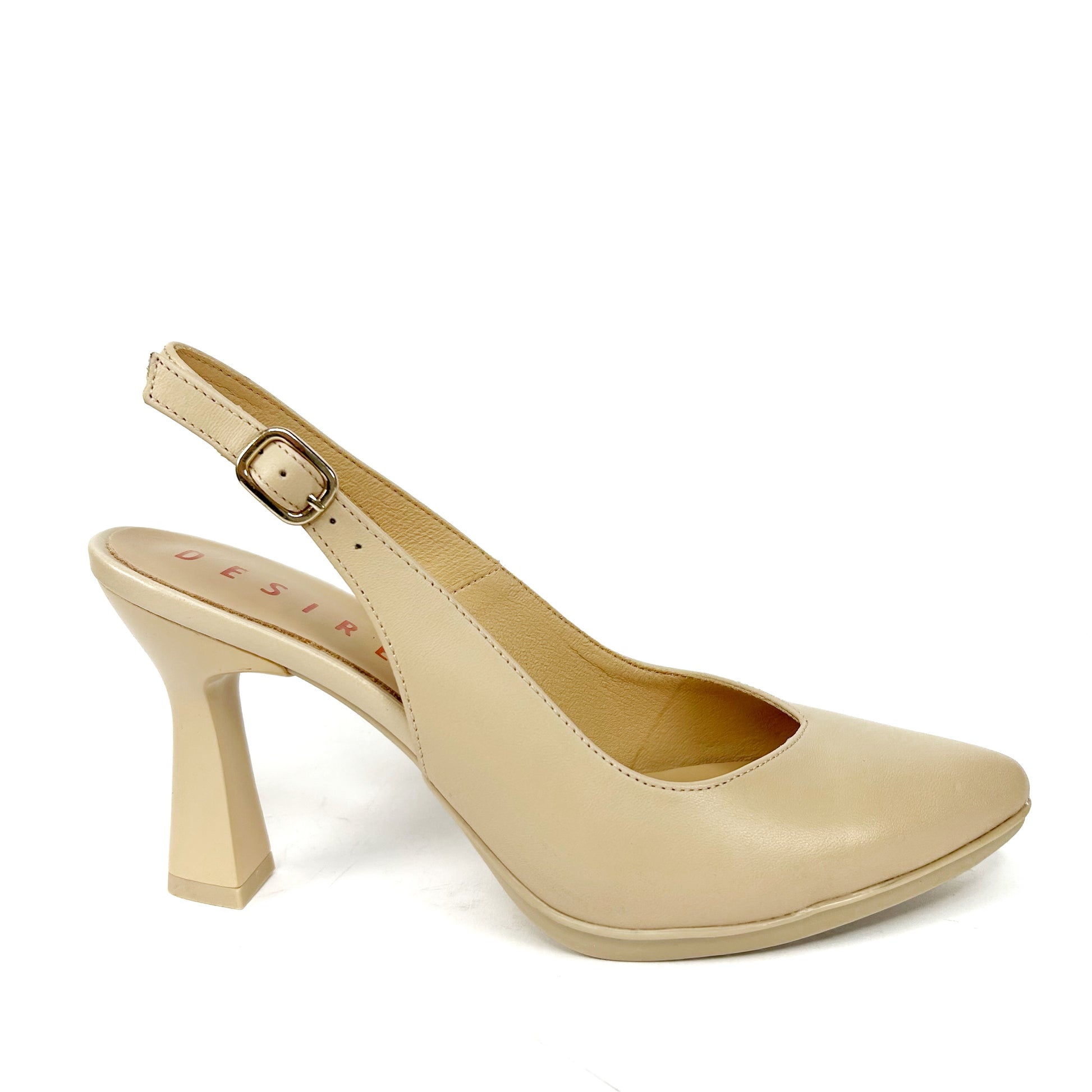 -Zapato de salón destalonado y de punta fina, escote super favorecedor en V, con pequeña plataforma de goma en la parte delantera.