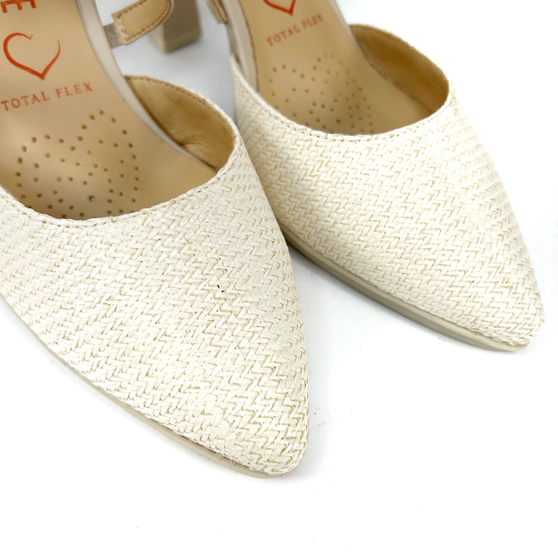 -Zapato de salón destalonado y de punta fina, con pequeña plataforma de goma en la parte delantera.