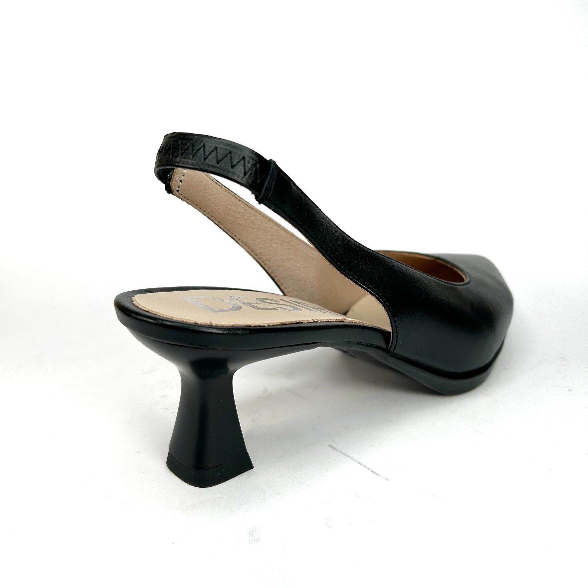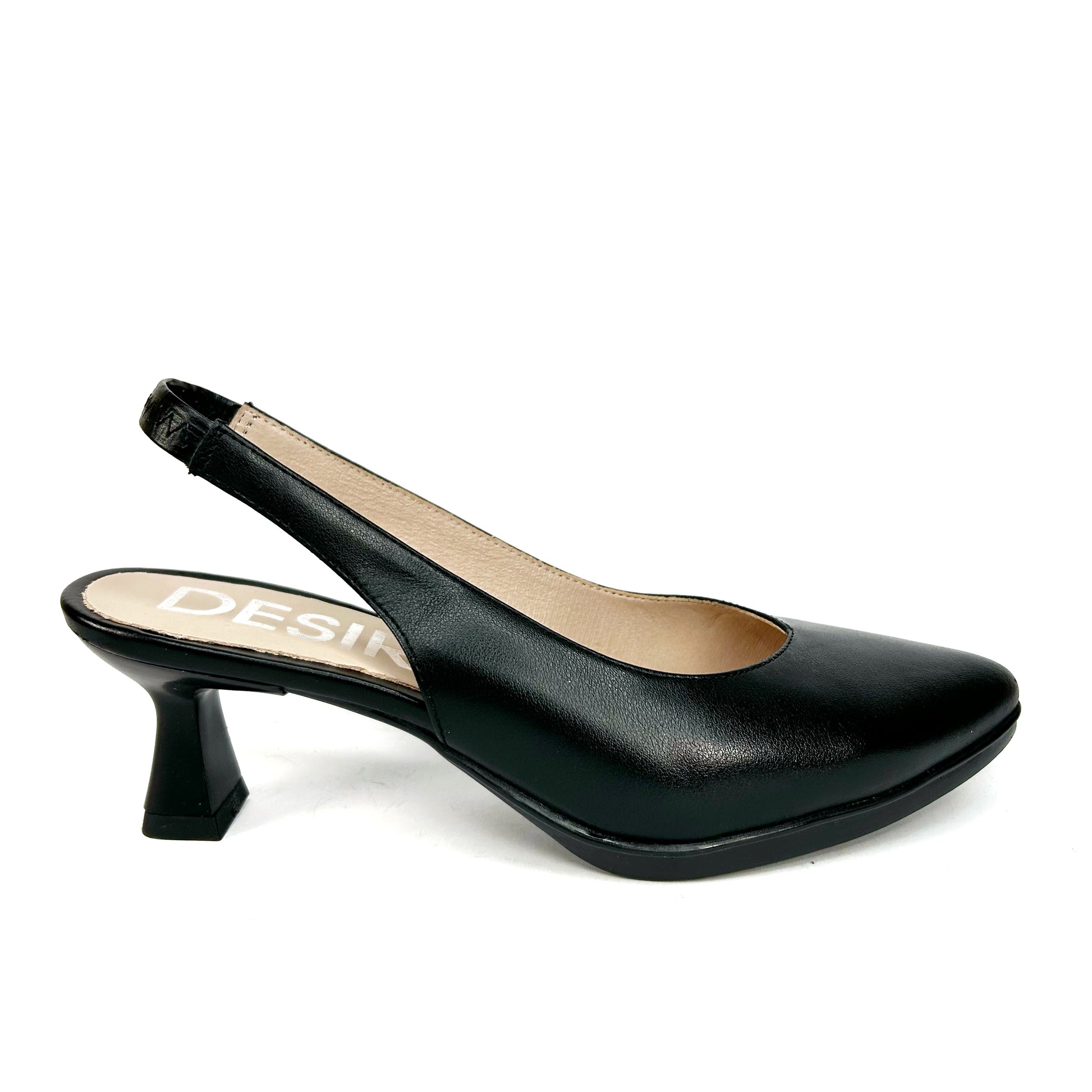-Zapato de salón destalonado y de punta fina, con pequeña plataforma de goma en la parte delantera.