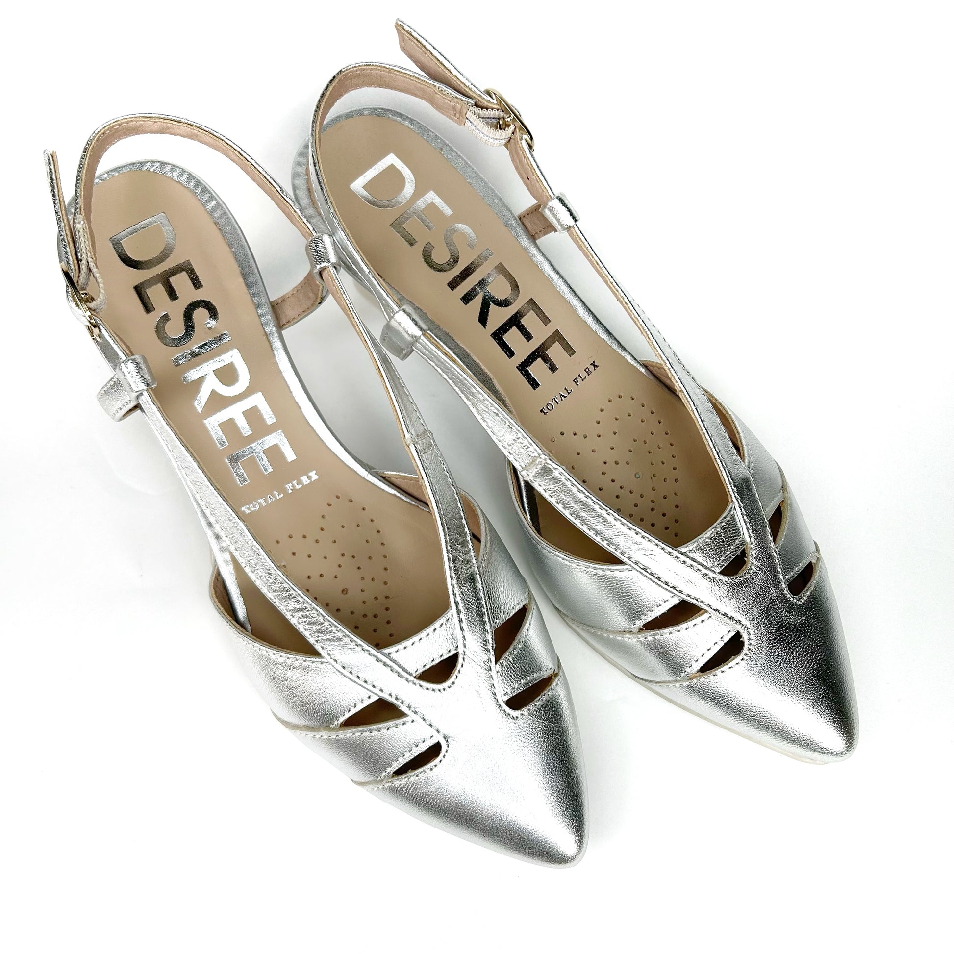 -Zapato de salón destalonado y de punta fina, con pequeña plataforma de goma en la parte delantera.