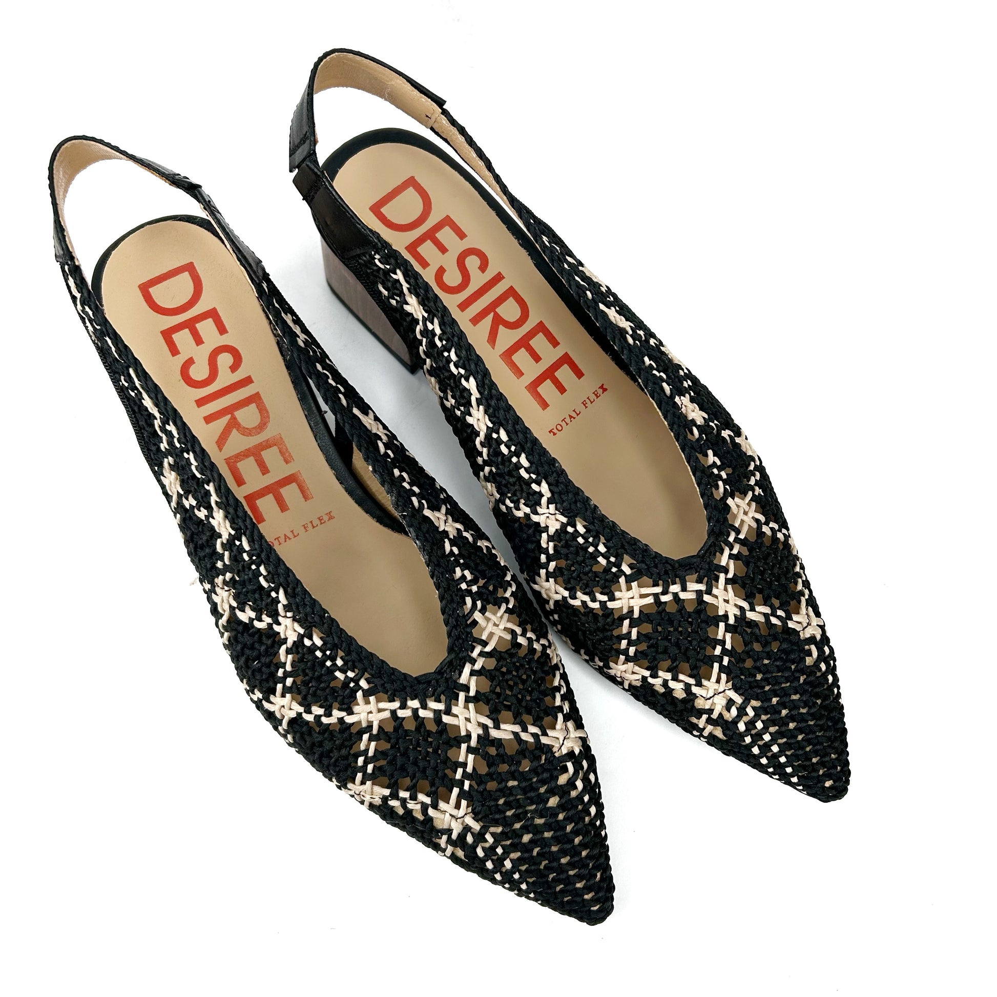-Zapato de salón destalonado, de punta fina y tacón grueso.
