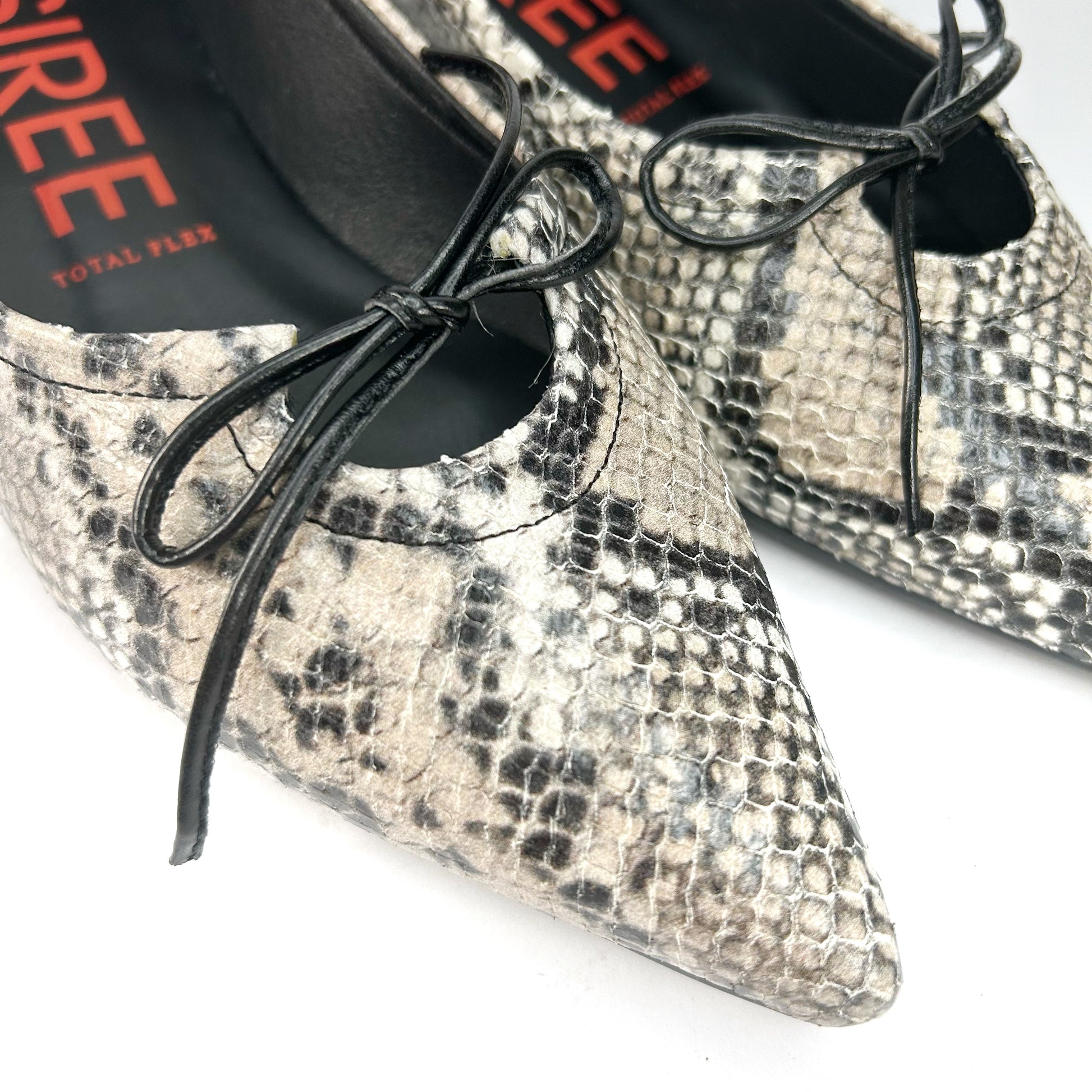 -Zapato tipo salón plano en piel de serpiente en tonos grises y negros