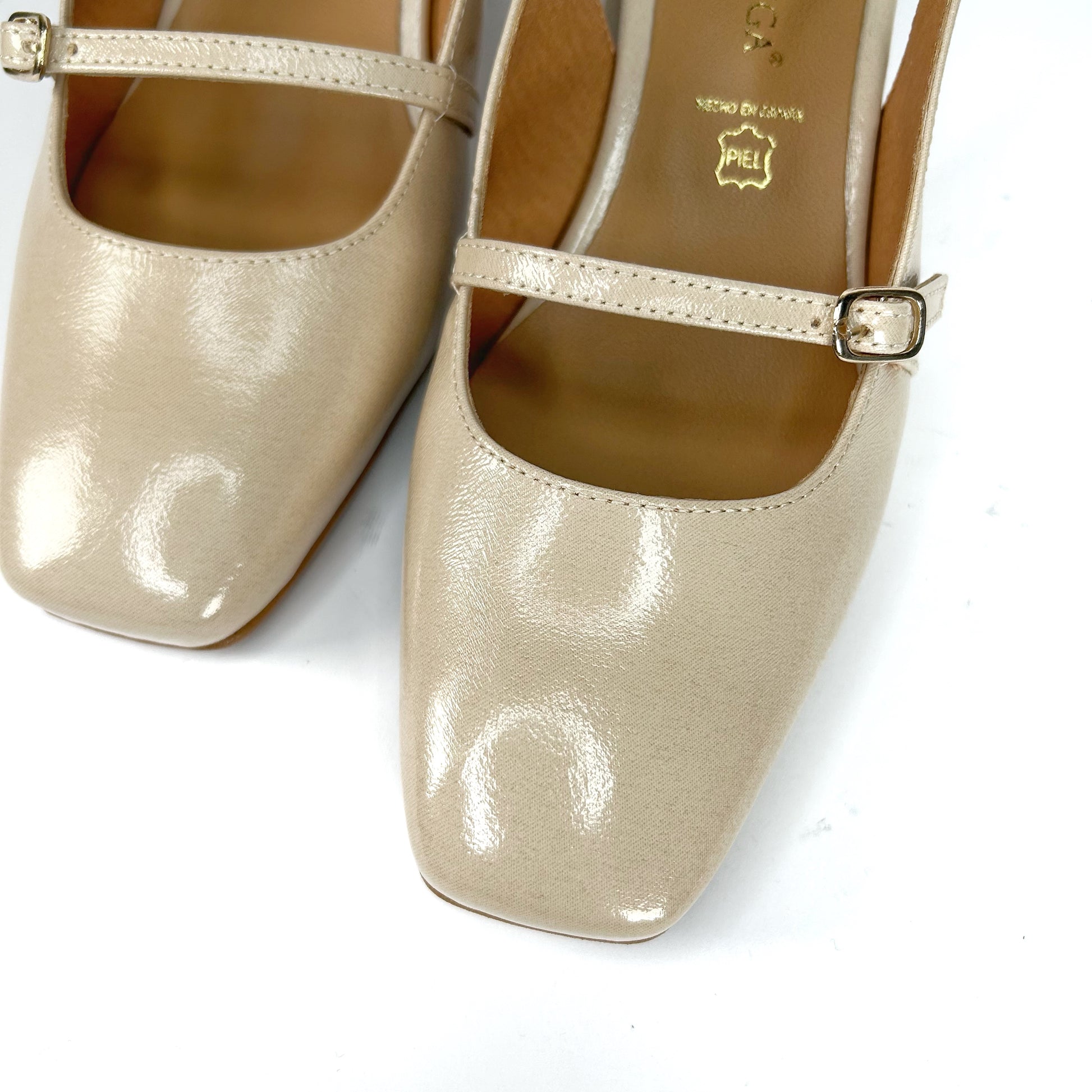 -Zapato de salón destalonado, de horma cuadrada tipo mary janes